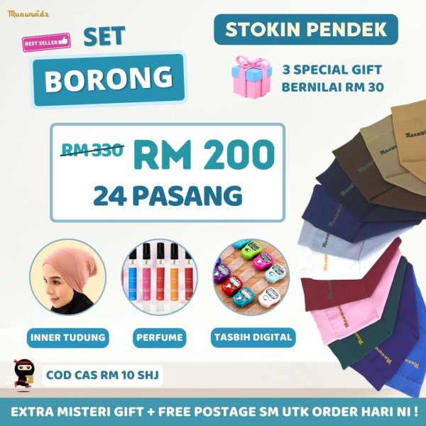 Set Borong Stokin Pendek (24 Pasang)